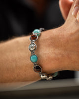 A bracelet full of inner strength and clear communication. Red Tiger Eye gives energy and protection, Turquoise brings calm and balance, and Aquamarine helps you speak from calmness and self-confidence.