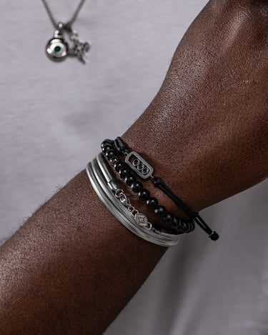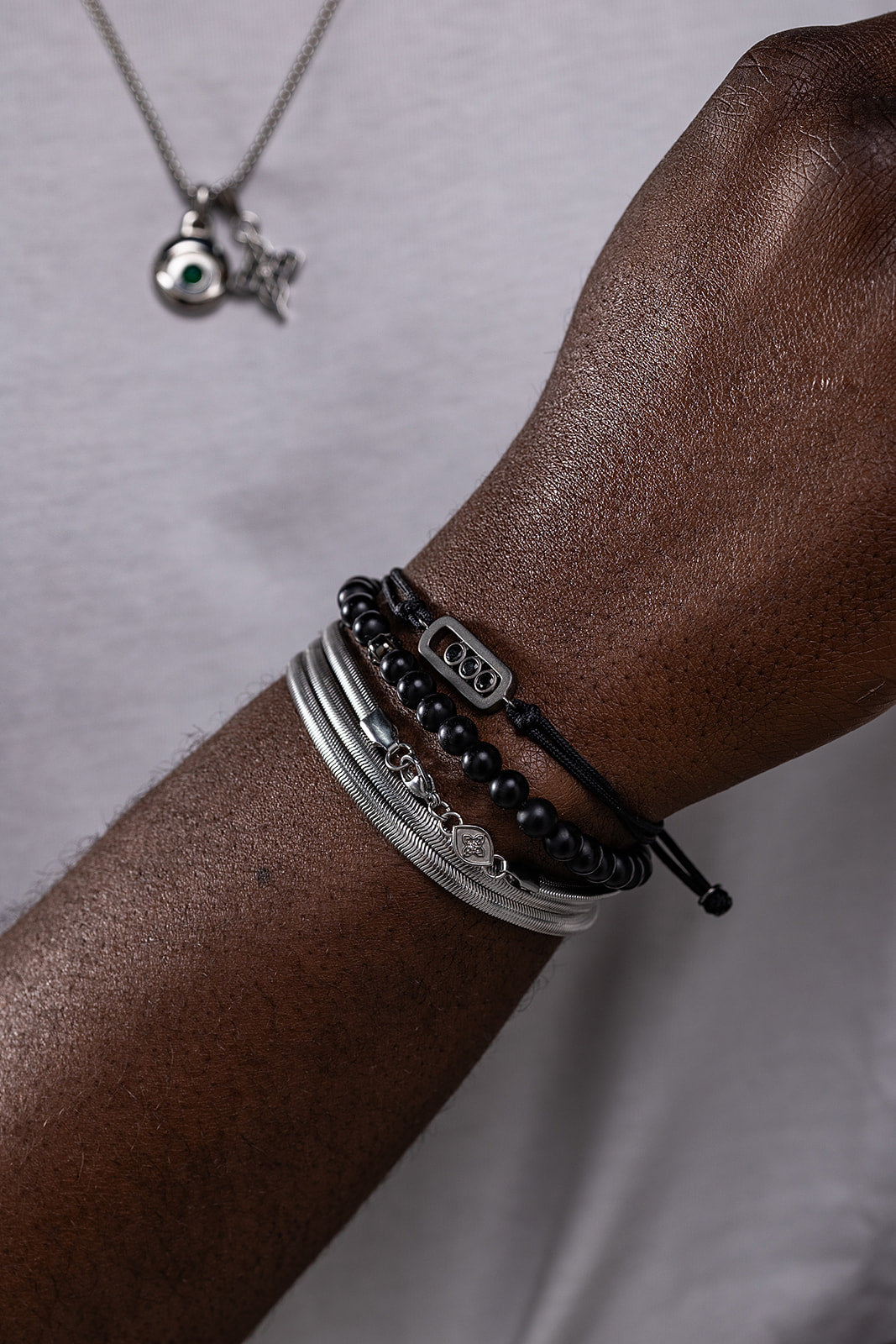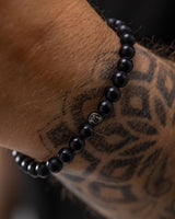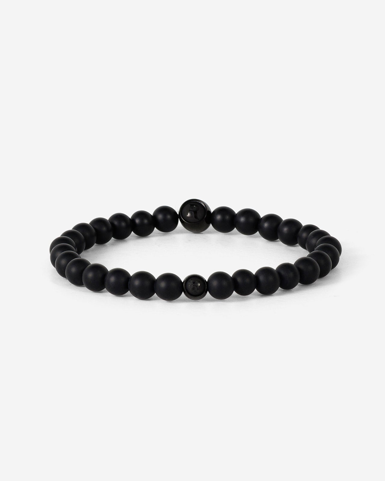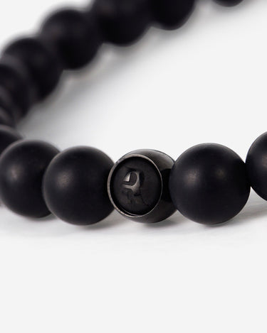 The Onyx Spirit is a bracelet made of smooth, matt black onyx beads, subtly interrupted by a black roanross logo detail bead. This bracelet exudes calm, focus, and timeless class.