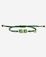 The Golden 10:10 symbolizes manifestation and success. Green stands for love, healing, and balance. This bracelet opens the Heart Chakra and reminds you of compassion and self-love.