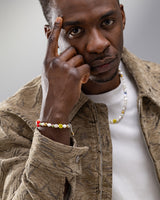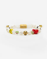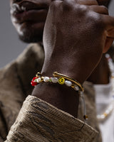 This striking rope bracelet combines classic white pearls with colorful “evil eye” charms. Each color represents a different energy: blue is protection, green healing, pink love, red strength, and white purity. This bracelet protects against negative energy and brings harmony.