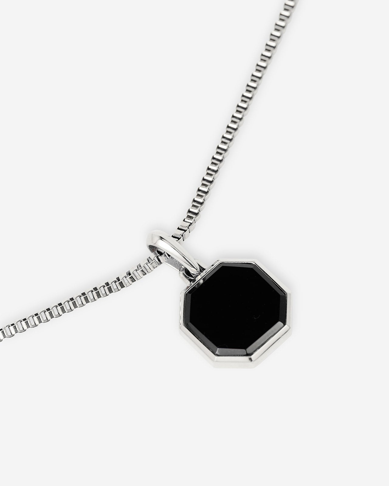 De Onyx Octagon combineert de diepe kracht van zwarte onyx met een strak axgthoekig design. Het geometrische lijnenspel staat voor balans en stabiliteit, terwijl de onyxsteen rust en bescherming symboliseert.